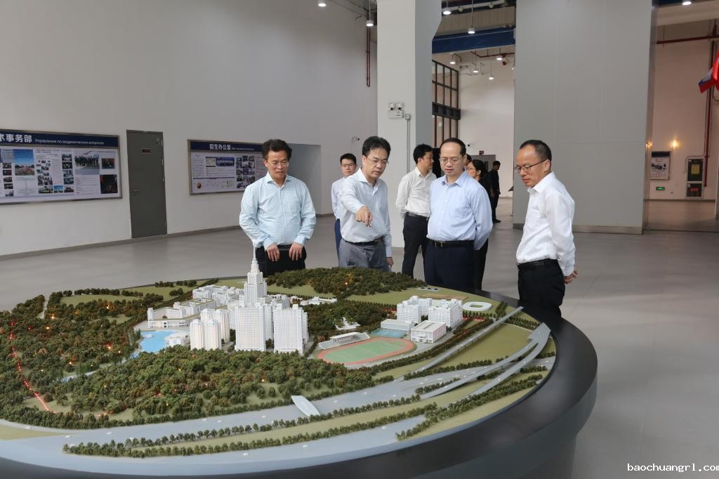 In front of a model of SMBU’s permanent campus, Zheng Ke is briefed on the planning and construction progress of SMBU’s permanent campus. Then, he goes into SMBU’s library and checks out the books in Russian, steps into the classrooms and experiences what is the peculiarity of a small-class teaching in Russian and walks into the exhibition hall, where the homework of the students is displayed. Next, he visits SMBU’s Activity Center for CPC Members, Office for the Student Union and Activity Room for Members of Communist Youth League to know more information about SMBU’s work on party building and political education.