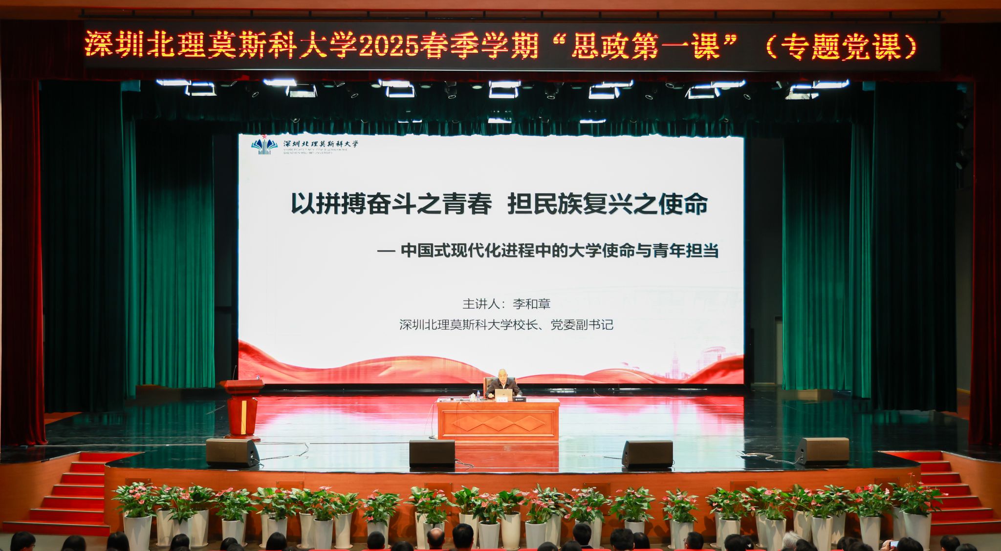 3月30日下午,竞技宝官网首页登录2025年春季学期“思政第一课”暨专题党课在礼堂开讲。学校校长、党委副书记李和章教授以《以拼搏奋斗之青春担民族复兴之使命——中国式现代化进程中的大学使命与青年担当》为主题,围绕中国式现代化,深入剖析大学使命与青年担当。全体思政课教师、专职辅导员及学生党员、入党积极分子共计400余人现场听讲。校长助理、学校办公室主任谢欢欣主持活动。